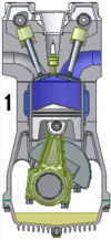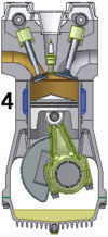 ventil öffnet und Luft oder brennbares Gemisch wird in den Zylinder gesaugt. Wenn der Kolben den unteren Totpunkt erreicht, wird das Einlassventil geschlossen.