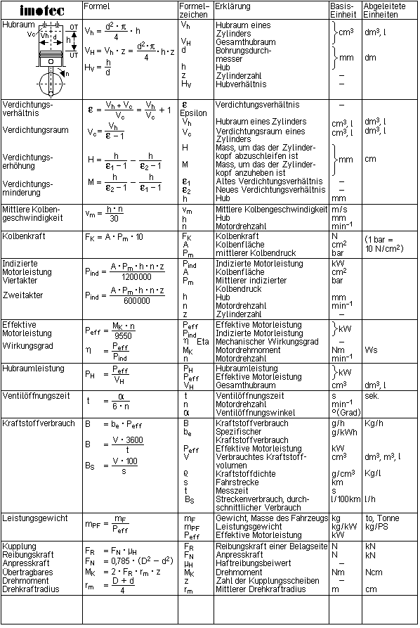 Basisformel zur Hubraum-Berechnung D x D x p x H x n = VH 4 X 1000 ____________________________________________________________________ ______ Beispiel 1: OPEL 2.0 ltr. OHC und 16V 86 x 86 x 3.1415926 x 86 x 4 = 1998ccm